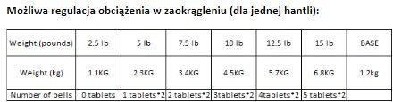 Greutatea ganterelor este ușor de ajustat datorită discurilor cu o greutate de aproximativ 0,6 kg fiecare, permițând o alegere precisă a încărcăturii în funcție de nevoile și posibilitățile tale actuale. Intervalul de reglare a greutății ganterelor este de la 1,1 kg până la 6,8 kg, ceea ce permite creșterea treptată a intensității exercițiilor și utilizarea setului atât de către începători, cât și de către utilizatorii mai avansați.